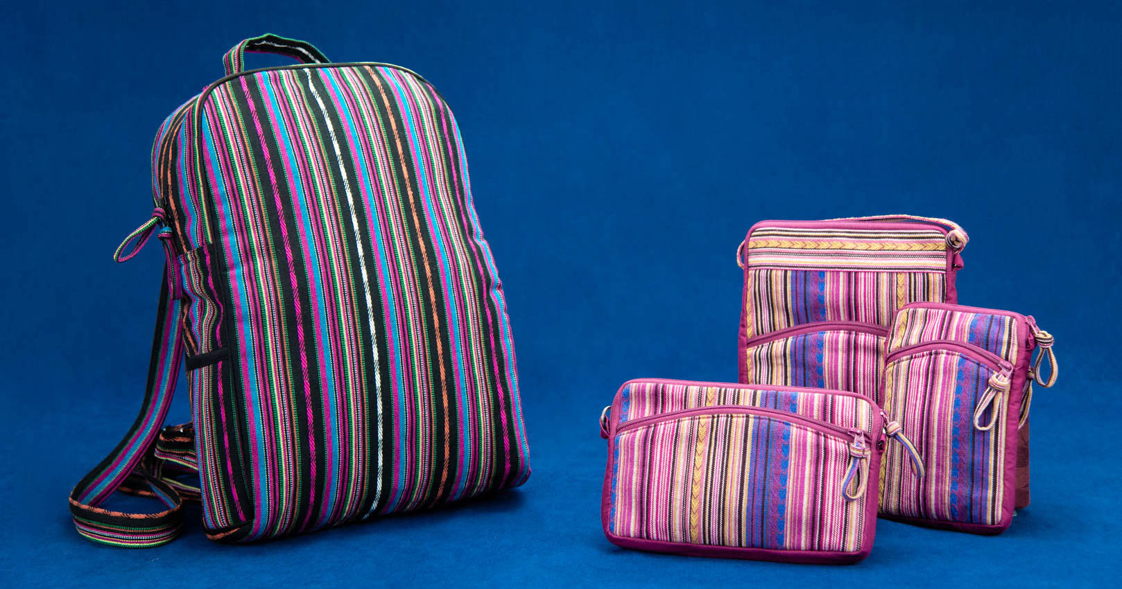 ini® features a wonderfully sturdy fabric woven in the hilltribes area of Southwest China. We have matched each colorful striped pattern with a coordinating zipper and lining cloth. Both the Shepherd’s Weave fabric and the lining cloth are 100% cotton. One of our most popular collections.